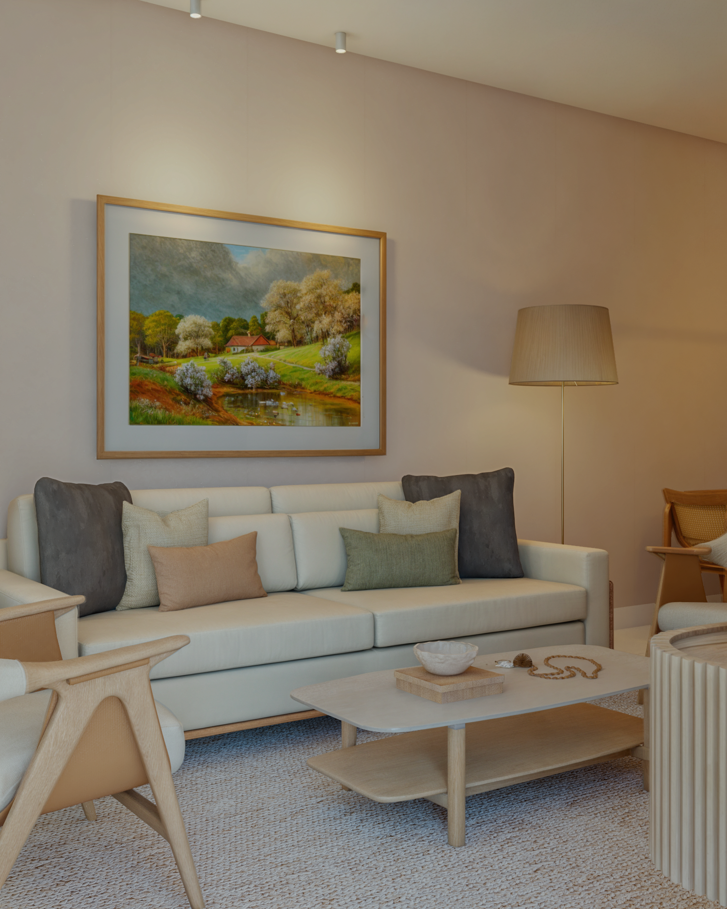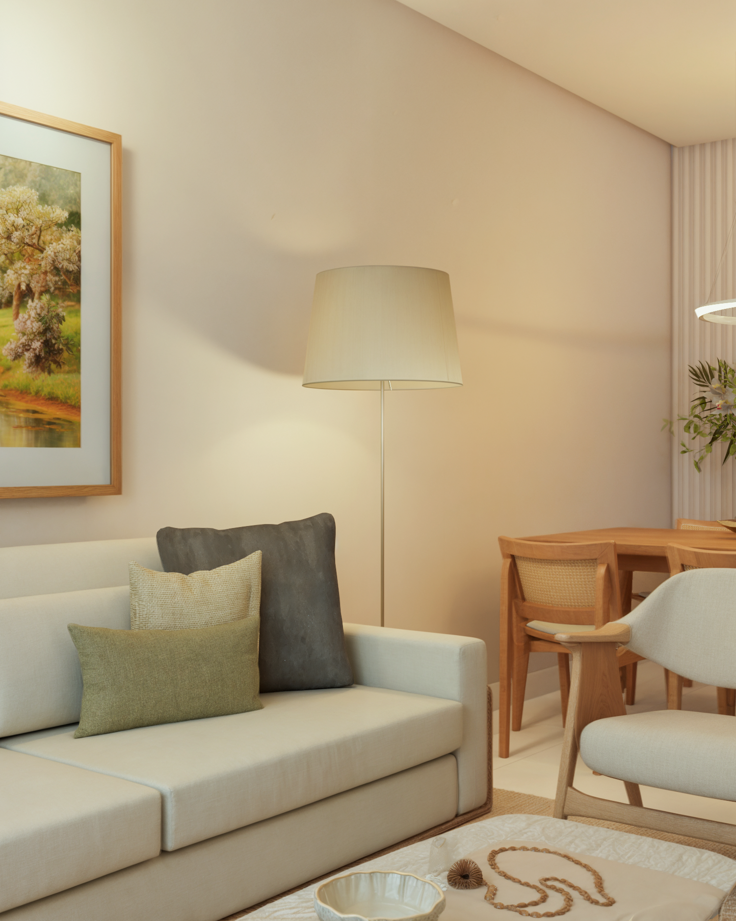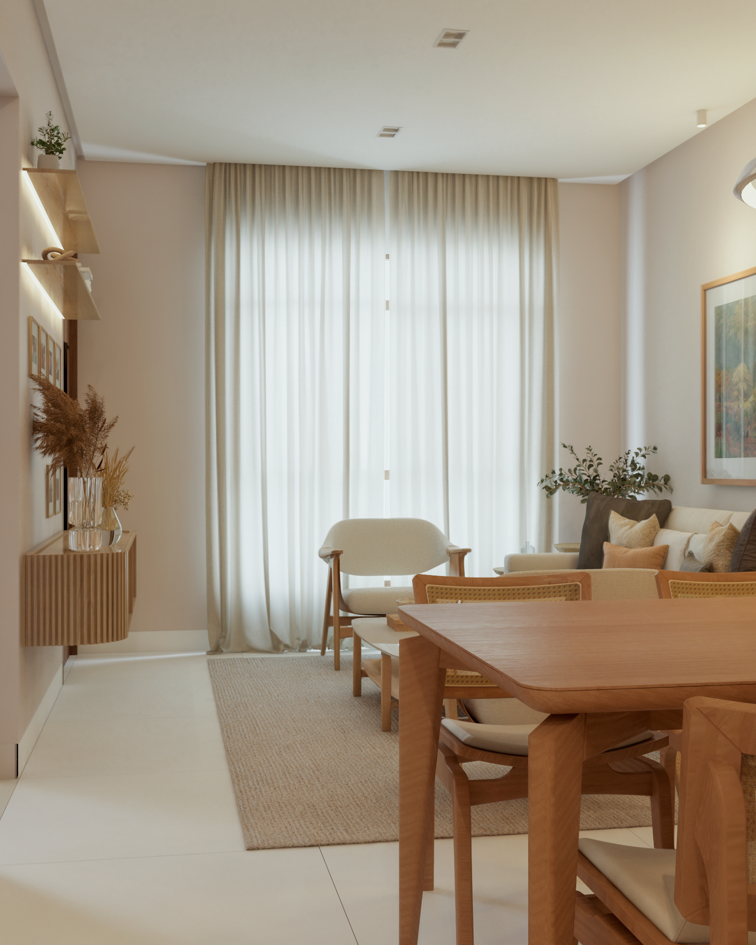 Na casa com cara de casa temos uma sala com cara de sala. Um ambiente cheio de personalidade e muito aconchego. Uma sala que inspira e convida com uma paleta elegante e uma obra de arte como ponto focal do espaço. Em tempos de quadros minimalistas, que tal uma composição de fotos da sua família?