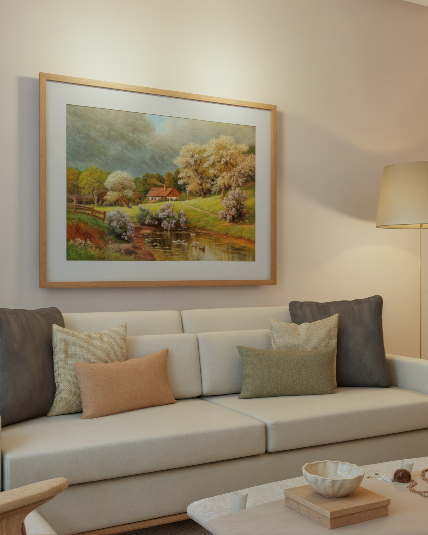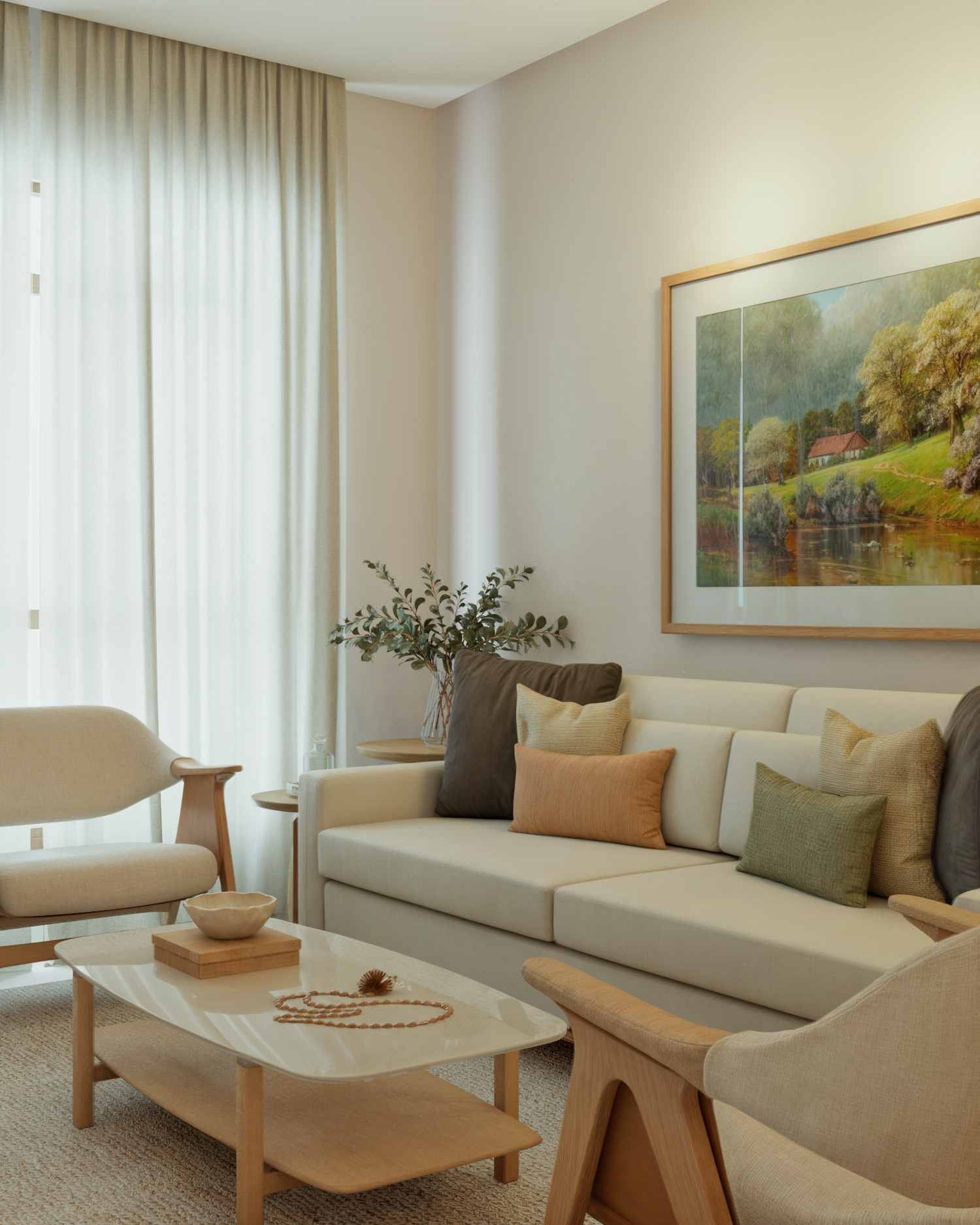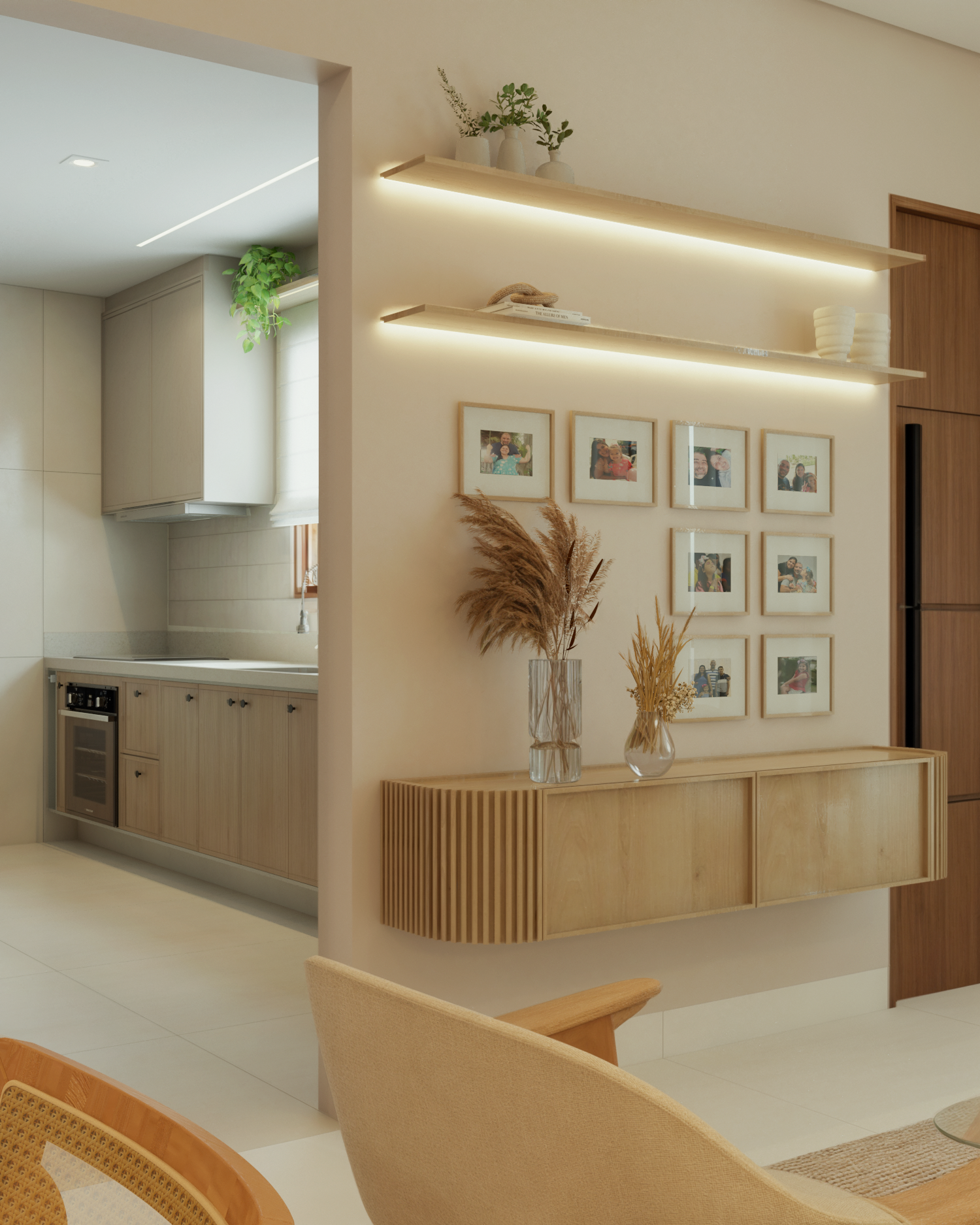 Na casa com cara de casa temos uma sala com cara de sala. Um ambiente cheio de personalidade e muito aconchego. Uma sala que inspira e convida com uma paleta elegante e uma obra de arte como ponto focal do espaço. Em tempos de quadros minimalistas, que tal uma composição de fotos da sua família?